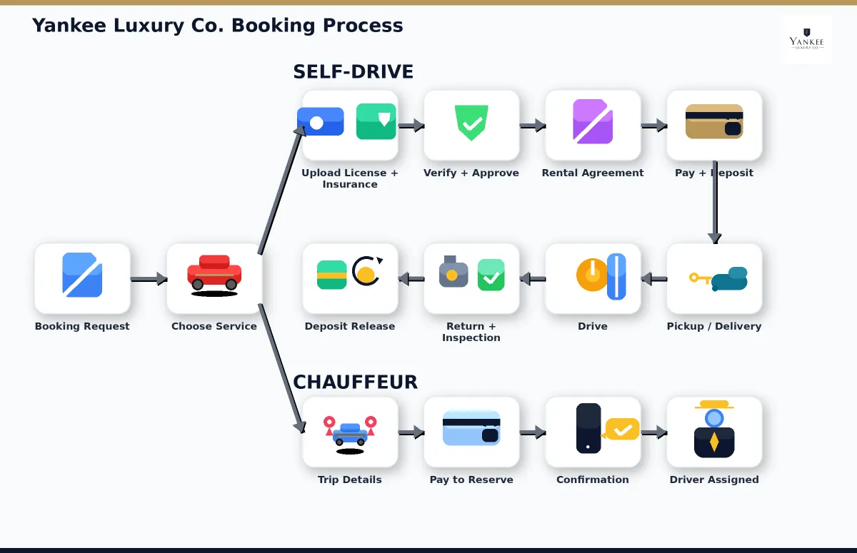 Note: Driver’s license + insurance requirements apply to Self-Drive rentals.